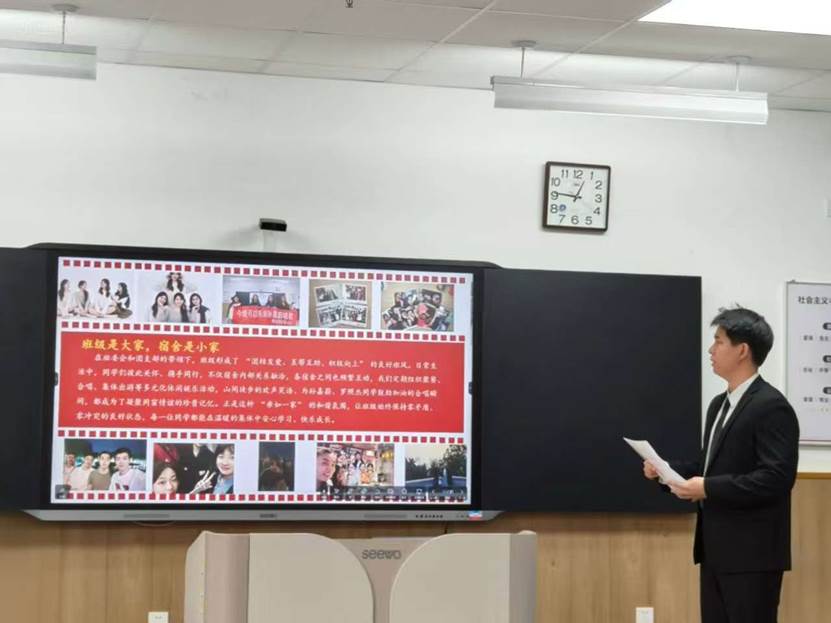 答辩现场气氛热烈。四个班级的负责人依次登台,以饱满的热情、鲜活的事例和丰富的图文资料展开汇报。各班紧扣班集体建设核心,从思想引领、党团建设、学风培育、科研创新、社会实践、文体活动等多个维度,全面展现了班级建设的丰硕成果。既有以党建为引领筑牢理想信念根基的扎实举措,也有聚焦法学专业特色深耕学业、法考高通过率与丰硕学术成果的亮眼表现;既有深入社区普法、助力基层法治建设的实践担当,也有文体活动凝聚集体、互帮互助的温暖班风,充分彰显了新时代研究生的专业素养、责任担当与集体凝聚力。