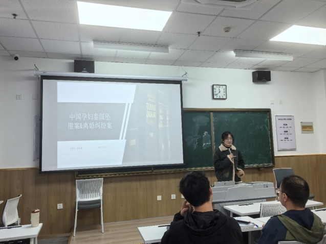 11月19日上午,2025级法律硕士(非法学)3班在218教室开展案例分享会,主讲人孙心茹围绕“中国孕妇泰国坠崖案”及其引发的离婚纠纷,展开了一场深入的法律实务解析。