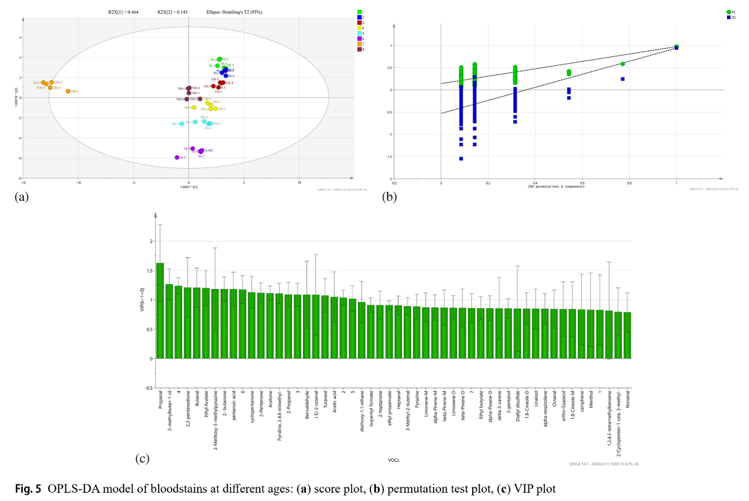 相关研究以“Estimating Bloodstain Age Using HS-GC-IMS and Machine Learning”为题,近期在国际法医学杂志(International Journal of Legal Medicine)上发表,文章的第一作者是2023级法律(非法学)专业法庭科学方向研究生郭孟硕,通讯作者为李学博教授,该研究得到了山东省自然科学基金(ZR2023MH350)及山东省青年研究大学生专项课题(WL-SQD25019, WL-SQD25020)的资助。